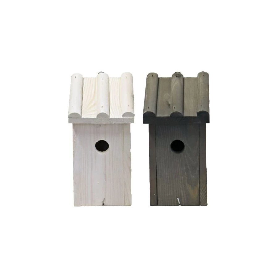 Mezenkast hout voor buiten met schuin ribdak is ideaal voor in uw tuin. Mezen kunnen in alle rust hun nestje maken en u kan genieten van de vogeltjes in uw tuin. De mezenkast is voorzien van een ronde opening en een hanghaakje. Hang de nestkast op minimaal 1,8 meter hoogte, zodat katten er niet bij kunnen. Zorg er voor dat de mezenkast op een rustige plaats hangt waar de vogels niet of weinig gestoord worden. Mezen hebben graag een vrije aanvliegroute zonder takken en bladeren voor de invliegopening. Verkrijgbaar in 2 kleuren. Geen kleur keuze mogelijk. – Afmeting : 27,5 x 16,5 x 14,5 cm – Gewicht : 1kg