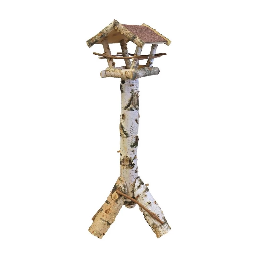 Voederhuis berken speciaal met dakleer dak op poot is een gezellig en duurzaam voederhuis voor vele soorten buitenvogels. Het voederhuis is makkelijk te verplaatsen en is gemaakt van stevig berkenhout en afgewerkt met een dakleer dak. Het huisje kan het gehele jaar gebruikt kan worden. Zo zullen diverse soorten buitenvogels uw tuin bezoeken, die u op hun beurt laten genieten van hun aanwezigheid en bedrijvigheid. – Afmeting : 123,0 x 48,0 x 48,0 cm – Gewicht : 11,2kg