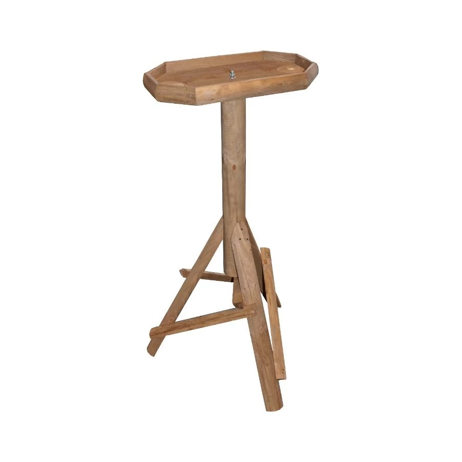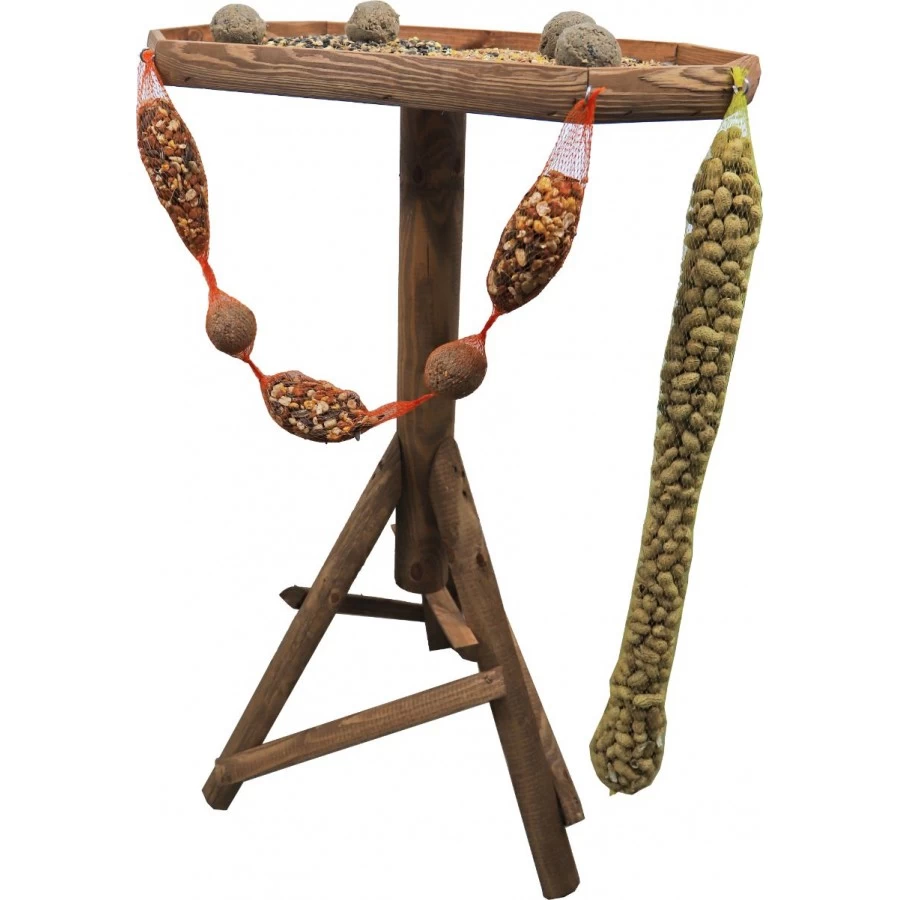 Voedertafel bruin achthoekig op poot is gemaakt van vurenhout. Op deze grote voedertafel kunt u allerlei lekkernijen voor vogeltjes neerleggen. De voedertafel heeft een opstaand randje, zodat los zaad er niet makkelijk vanaf waait. – Afmeting : 99,0 x 62,5 x 48,0 cm – Gewicht : 4,2kg