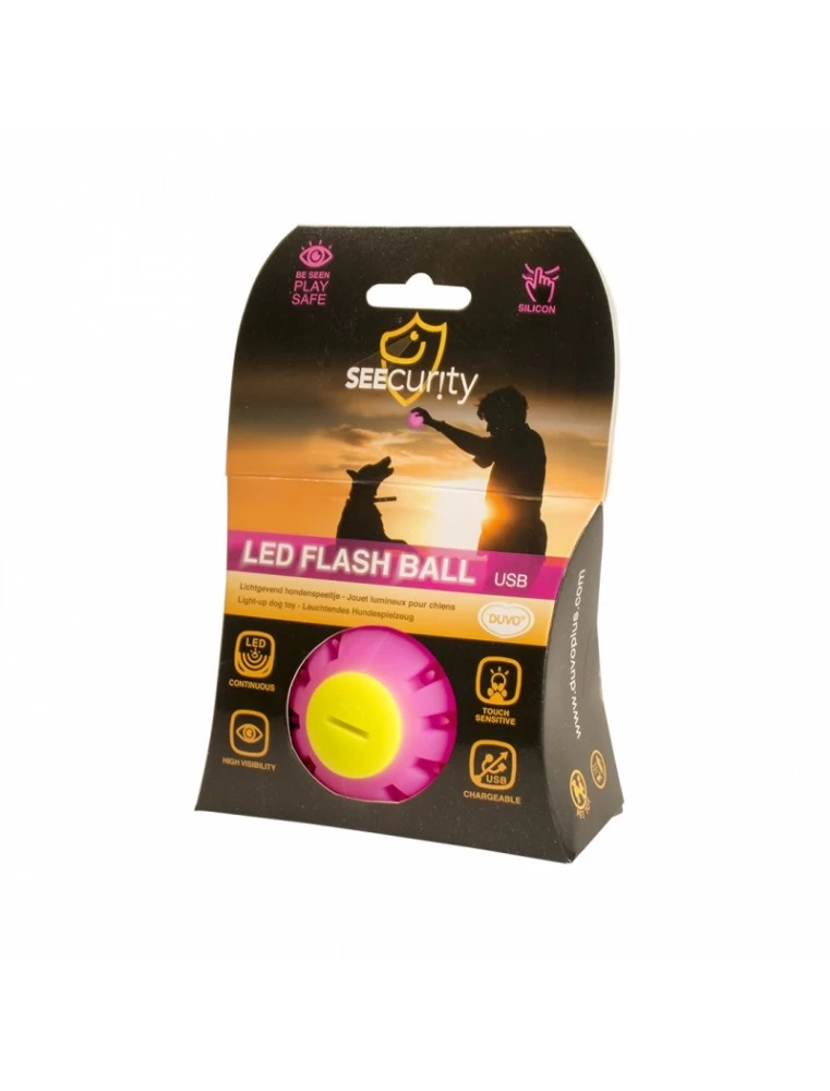 Met de LED Flash Ball van Duvo+ kan je nu ook na zonsondergang samen met jouw hond spelen. Deze duurzame, silicone bal licht automatisch op als jouw hond hem aanraakt en valt na 30 seconden vanzelf uit om energie te besparen. Deze lichtgevende bal zal je hond volop uitdagen en uren lang vermaken. Gebruik een muntje om het dopje open te draaien en de bal te activeren of om de bal op te laden via de USB-poort. De bal blijft zeven uur lang branden! Oplaadbaar met USB, geen batterijen nodig., Kleur : Fuchsia, Afmeting : 17,5x12x5,5