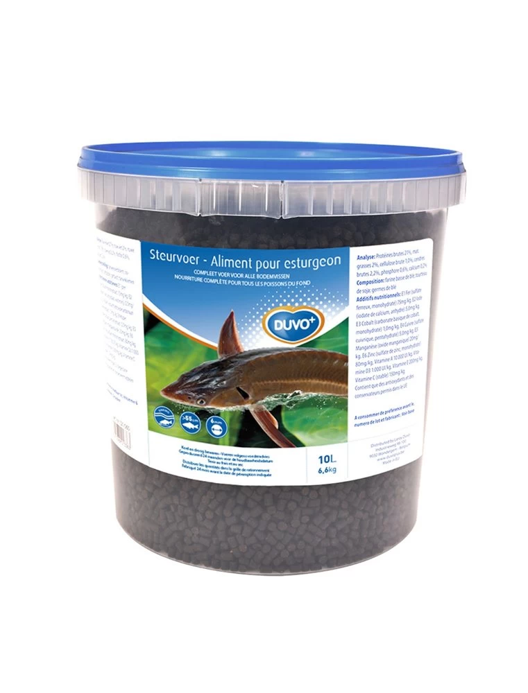 Steuren hebben andere voeding nodig dan andere vijvervissen. Daarom ontwikkeld Duvo+ speciaal steurvoer, dit voer bevat meer vetten als andere voeders voor vijvervissen. Het bevat vismeel, visolie en eiwitten, al het nodige voor een goede conditie en sterke weerstand. Daarnaast zinkt het voer naar de bodem, waardoor de steur de voeding makkelijker kan opeten. Deze korrels zijn ongeveer 3mm groot en zeer geschikt voor steuren tussen de 25-55cm.