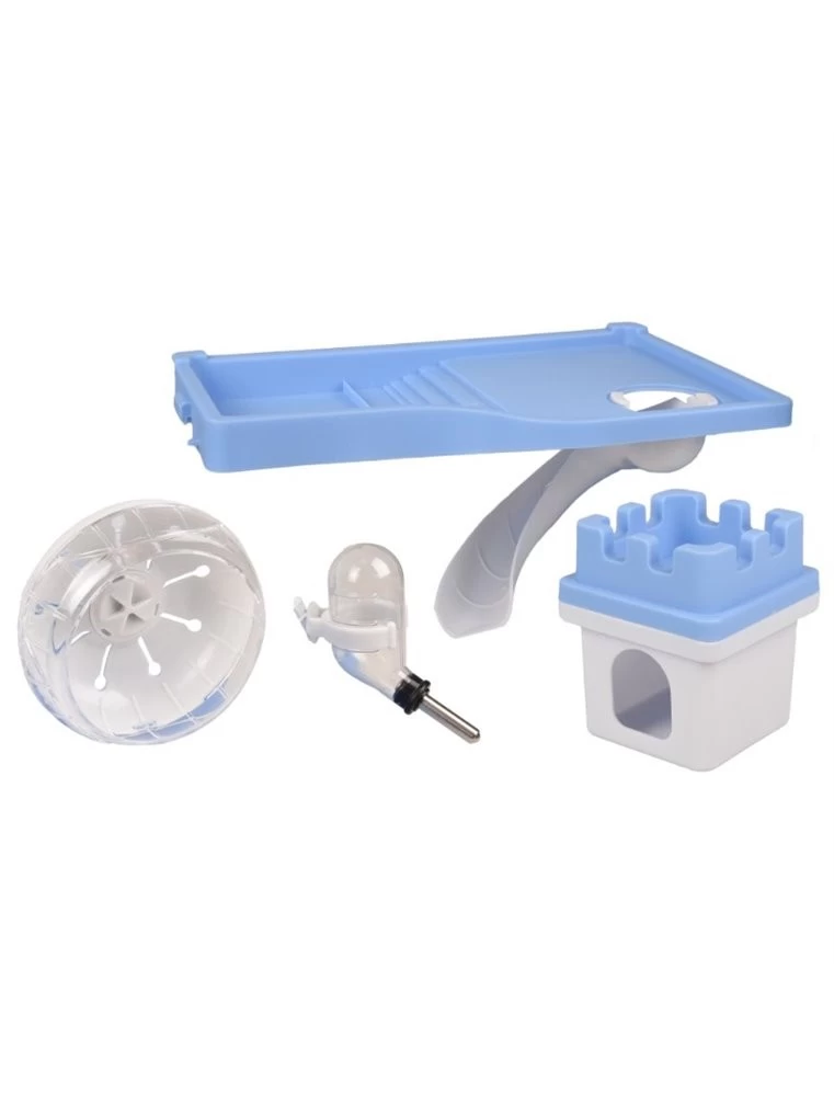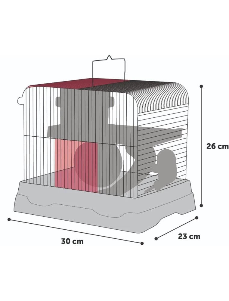 De hamsterkooi Dinky wordt gebruikt als tijdelijke kooi bij bijvoorbeeld ziekte of het tijdelijk apart plaatsen van een hamster. Deze hamsterkooi beschikt over alles wat een hamsterverblijf nodig heeft, een schuilhuisje, loopradje, drinkflesje en een leuke glijbaan. De kooi is eenvoudig schoon te maken omdat het tralie werk uit de onderbak gehaald kan worden.