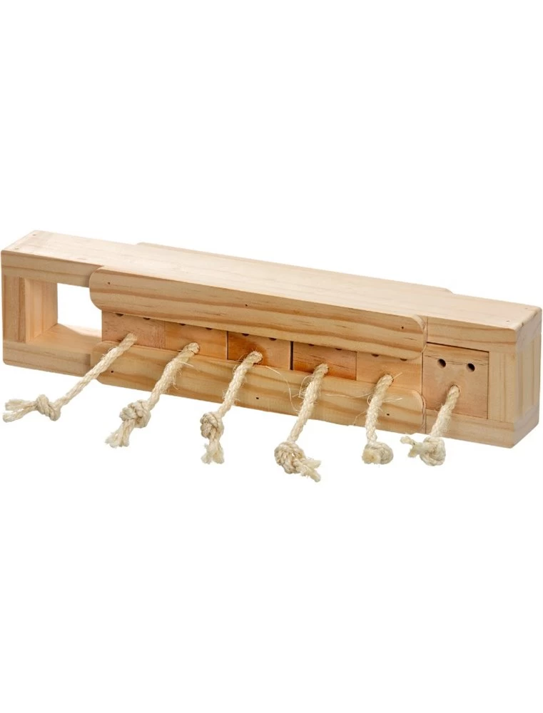 Rody brain train speelgoed is intelligentie speelgoed voor knaagdieren. De houten blokken kunnen gevuld worden met voer of lekkernijen. Het dier moet dan aan het touw de blokken uit de kubus trekken. U kunt de kubus met de touwen opzij of omhoog leggen.