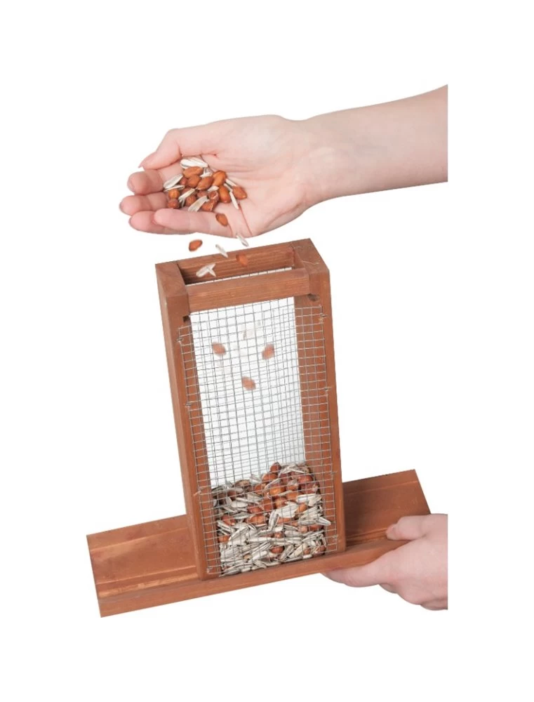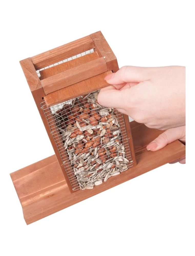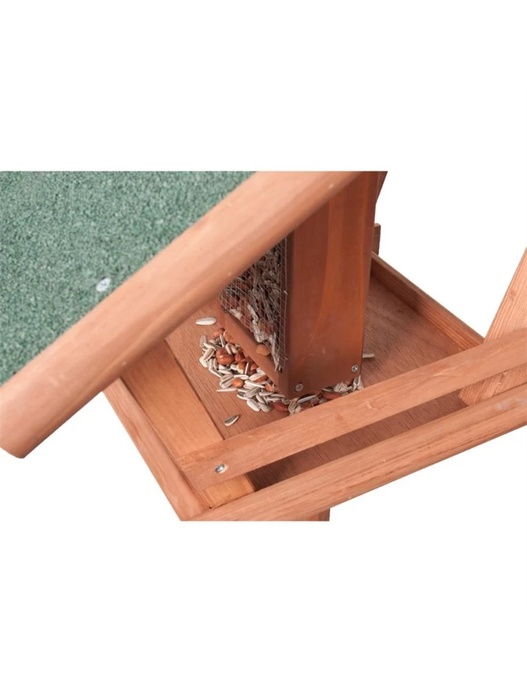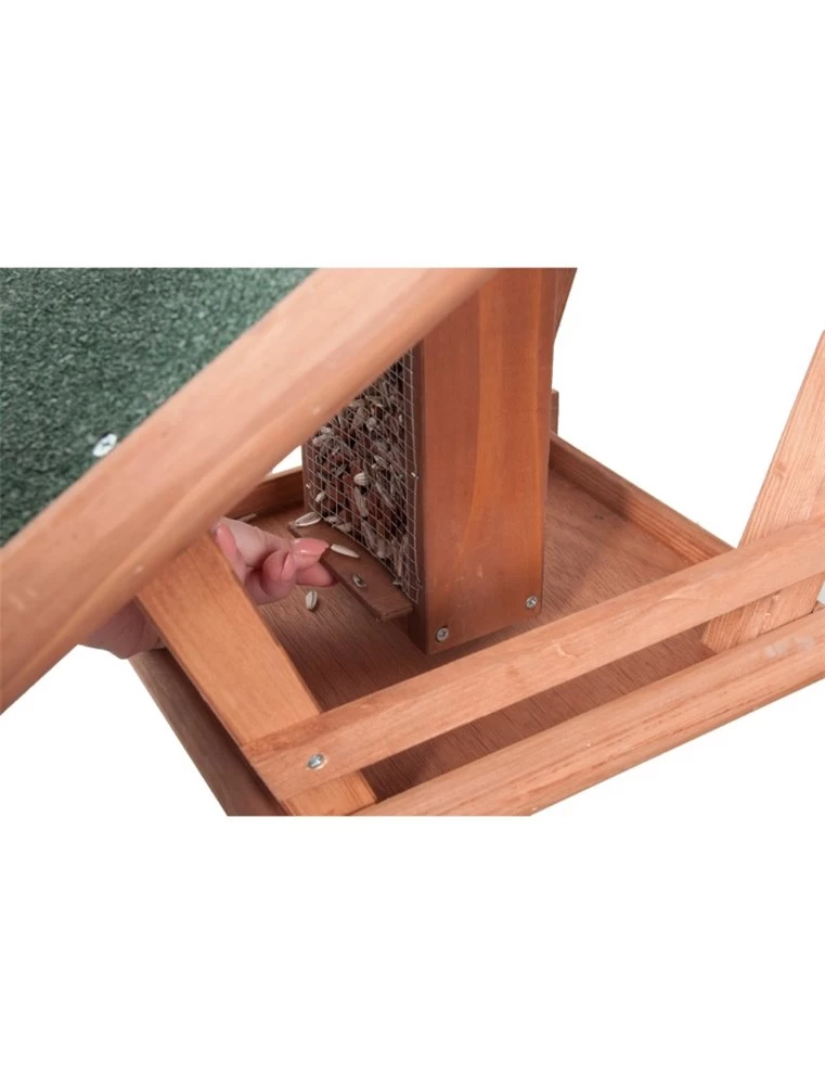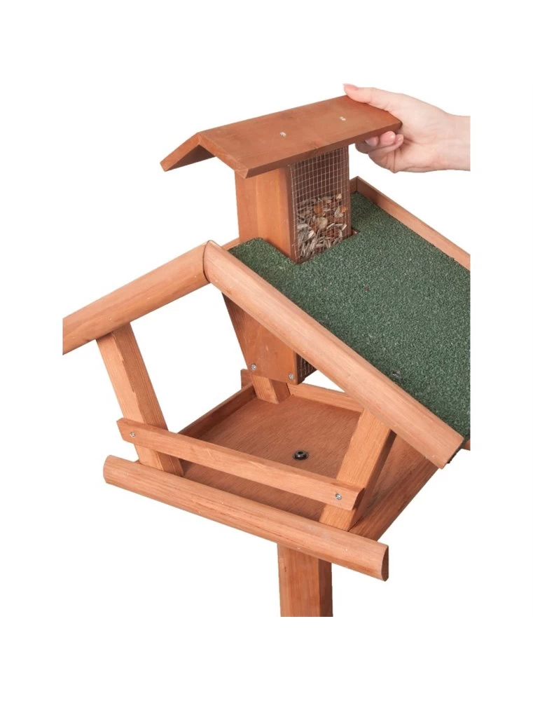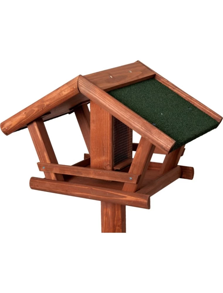 Vogel Voederhuis Mimir, een mooi en klassiek voederhuis. Het heeft natuurlijk een dak bovenop het huis, daaronder bevindt zich een plat bakje waar iets op gelegd kan worden. Dit houten voederhuis is een mooi huis voor jouw vogel.