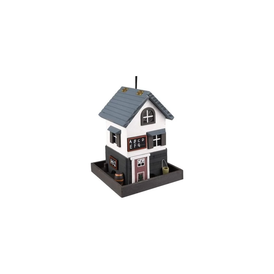 Met ophangtouw om eenvoudig op te hangen. De voedersilo is behandeld met vochtwerende verf. In de bodem zitten drainagegaatjes om water af te voeren. Geschikt om te vullen met zaden. Met verdeelblokje om de zaden gelijkmatig te verdelen.