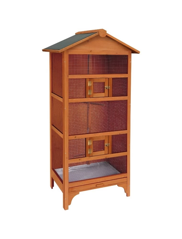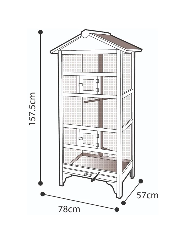 Op zoek naar een mooi verblijf voor uw vogels? De vogel voliere Nevada Cottage is een mooie voliere voor meerdere vogels. Dit staande model van Flamingo heeft een afmeting van 78 x 57 x 157,5 cm en heeft een weersbestendige afwerking. De voliere kan zowel buiten als binnen gebruikt worden, let bij het plaatsen buiten wel op (slag)regen in de voliere. Plaats deze bij voorkeur beschut, ook voor uw vogels is dit beter. De temperatuur kan in de zomermaanden enorm oplopen, houd hier rekening mee bij het plaatsen van uw voliere.