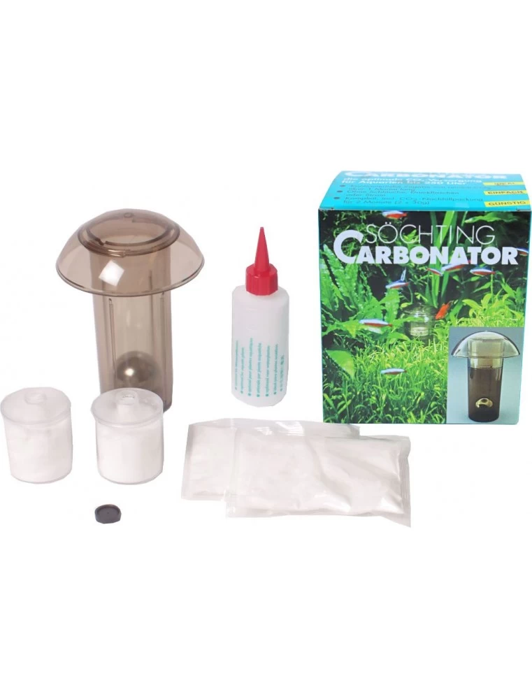 De Söchting carbonator is de optimale Co2-verzorging voor aquaria tot 250 liter. Zorgt voor een continue afgifte van zuivere Co2 voor 1 maand. Zonder slangen, drukcilinders of stroom. Dit set wordt geleverd inclusief 2 Co2-navuleenheden, dit is toereikend voor 2 maanden.