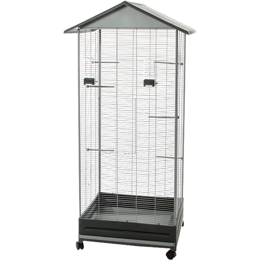 De Voltregá volière 430 grijs/grijs is een schitterende ruime kamervolière met een plastic puntdak die zeer geschikt is voor het houden van tropische vogels, maar ook geschikt voor de kleinere kromsnavels zoals grasparkietjes en agapornissen. Deze binnenvolière wordt geleverd met zitstokjes, drink- en voederbakjes en een lade. Deze lade is ideaal om de kooi schoon te maken. De volière staat op wieltjes en is daardoor makkelijk te verplaatsen. Zorg ervoor dat de volière tochtvrij en niet in de volle zon komt te staan. Dit kan schade toebrengen op uw vogels. Materiaal: hard plastic met metaal. Deze kooien worden geleverd als bouwpakket. Afmetingen: 79×67,5×167 cm.